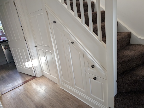 • Under stairs storage solutions with pull out shelving and drawers.
